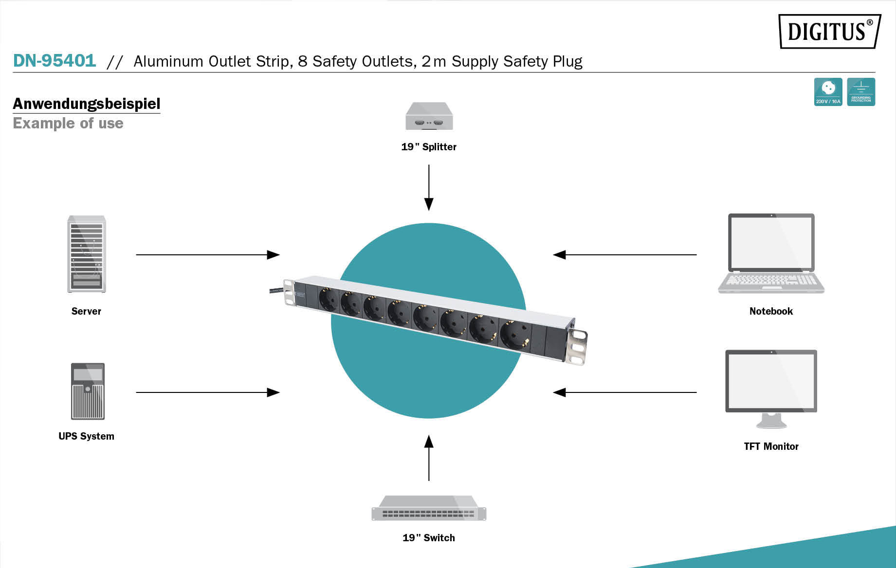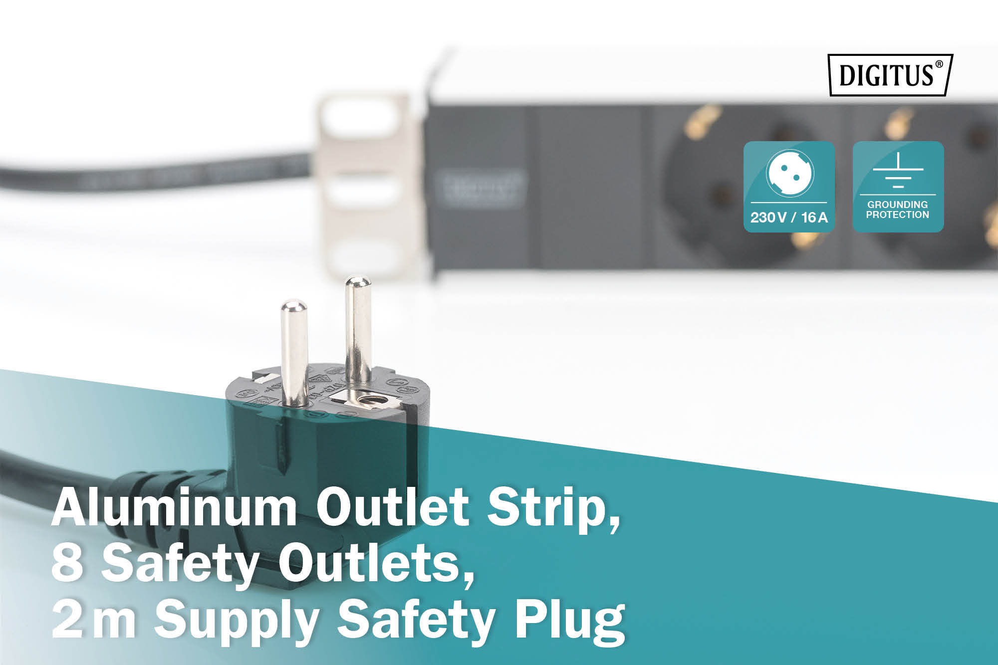 Die DIGITUS® Steckdosenleisten sind die perfekte Lösung für Ihren 482,6 mm (19")-Netzwerk- oder Serverschrank. Für die Schrankmontage optimiert bieten Ihnen die DIGITUS® Steckdosenleisten mit 220-240V bei 50-60 Hz die beste Performance bei geeigneter Auslastung. Das mitgelieferte 482,6 mm (19")-Befestigungsmaterial sorgt für eine optimale Befestigung an den Profilschienen Ihrer Schränke. Jede Steckdosenleiste kann horizontal sowie vertikal montiert werden und es besteht die Möglichkeit, je nach Schranktyp die Steckdosenleiste mit den Abgriffen nach oben oder unten zu befestigen.